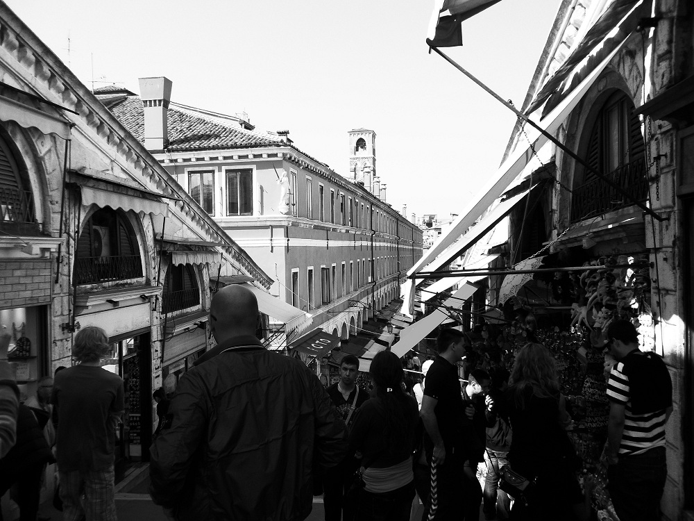 Pred časom me je na izmenjavi obiskala dolgoletna prijateljica in me dokončno prisila v brezskrbno šnoflanje po Benetkah (pod močnim vplivom obiska bom uporabljala izrazoslovje tistega sončnega dne … prevodi niso dosegljivi, a so pomeni dokaj dostopni preko konteksta). Načrt je bil jasen: študentsko bluzenje (študentsko, ker nismo imele dinarčkov za kakršne koli vstopnine, bluzenje, ker pri potepu nismo uporabljale turističnih vodnikov, z mojim poznavanjem mesta pa si ne pač ne gre pomagati, ker se pogosto izgubim še v domači kopalnici …). In kot vsako dobro bluzenje se je tudi to začelo z izjemnimi količinami kave. In kot vemo, Italija je ‘the place to be’ za vse ljubitelje pravega kofetkanja. In kava v Benetkah ni nujno draga, samo pravo lokacijo je potrebno poiskati – po nekaj mesecih izmenjave sem se naučila, kje ta mesta so (resno, uspeh zame). Po kavici in obdelavi vseh čvek iz domače Štajerske sva se dokončno odlepili iz s soncem obsijanega trga in se odpravili do vseh turističnih znamenitosti. Peš. Ker študentje pač ne bomo uporabljali vaporetta (tj. vodnega avtobusa). In sledile so vse tipične turistične znamenitosti. Zlili sva se v množico nemških, ruskih, ameriških, japonskih … turistov in jokcale in stokcale nad čudovitim sončnim dnem (in izjemno dragimi trgovinami z modnimi znamkami, ki navadnim smrtnikom pač niso dosegljive).